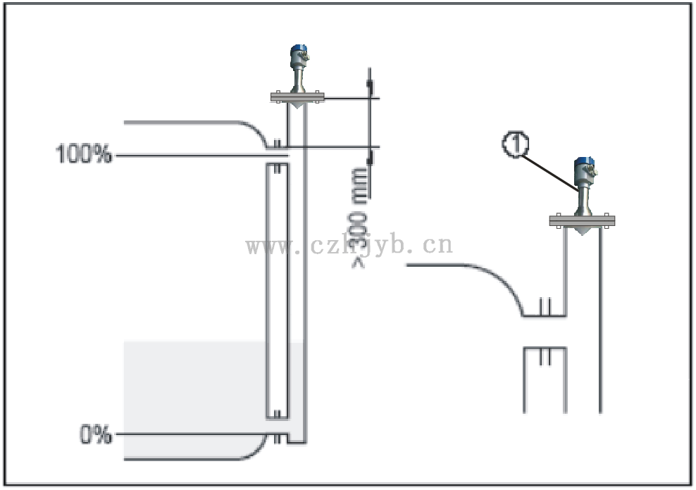 注:距離罐壁最小距離應為200mm。