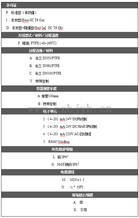 過程溫度(天線部分的溫度)                   (-40~260)℃
